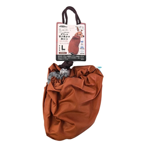 ドギーマンハヤシ Chiccha! パパッと着られる ポケット寒さ風よけ雨コート L ブラウン