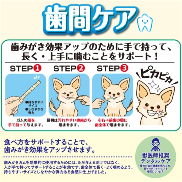 飼い主が持ってサポートしやすいサイズとしなやかな弾力ある食感。