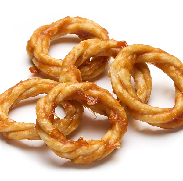 しなやかさが特徴の牛すじを使用したガムをリング状に成形し、ササミをディップしたハードタイプ。