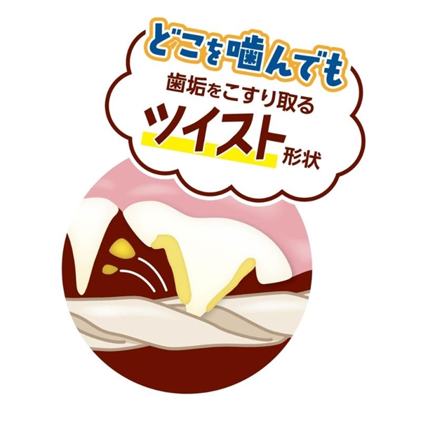 どこを噛んでも歯垢をこすり取るツイスト形状。