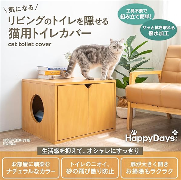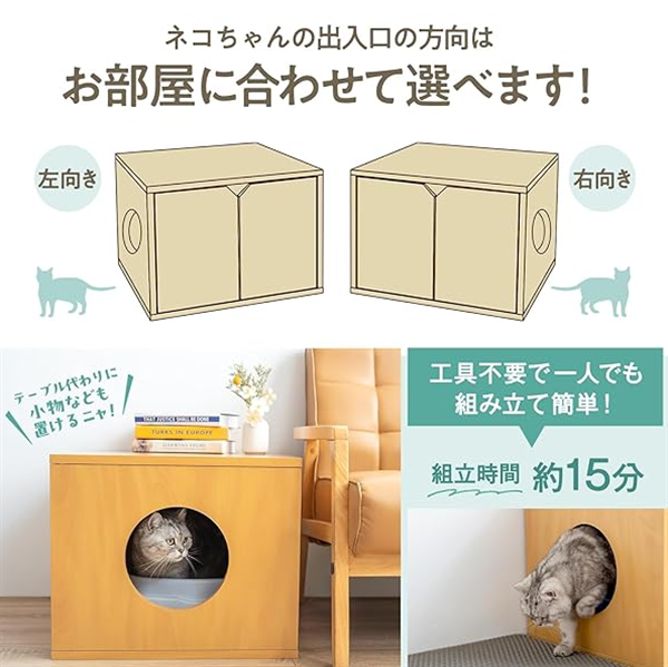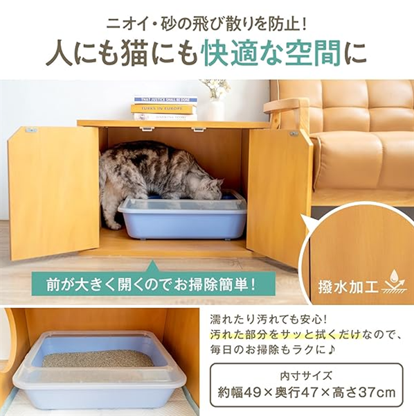 両開き扉でお手入れしやすく、猫砂の飛び散りやニオイを軽減。