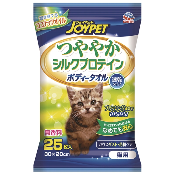 アース・ペット ジョイペット 猫用 つややかシルクプロテイン ボディータオル 無香料 速乾タイプ 25枚入