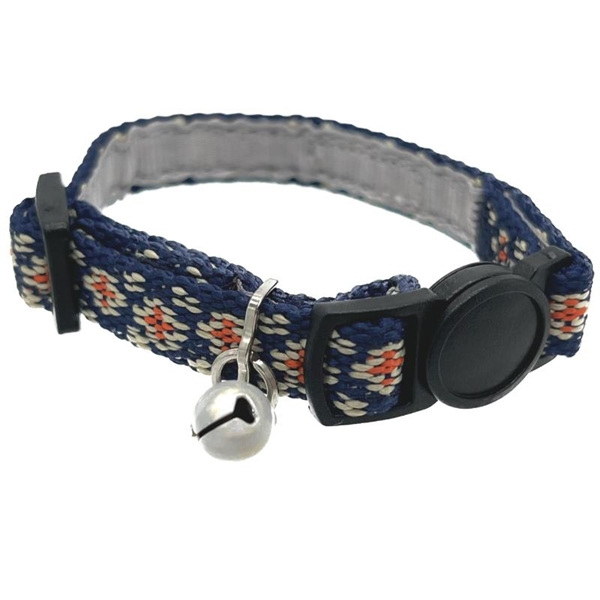 アース・ペット ターキー ねこモテ セーフティー外れる機能付 反射鈴付首輪 オルテガ ミニ猫用 紺×橙