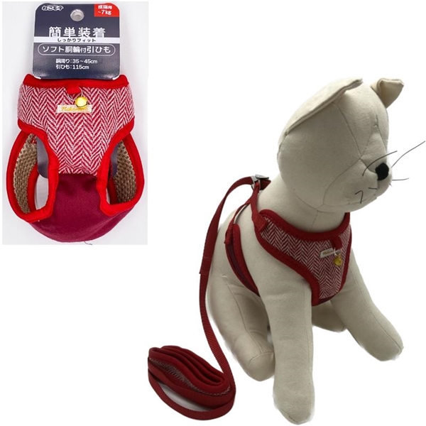 アース・ペット ターキー ねこモテ ソフト胴輪付引ひも ヘリンボン 成猫用 赤