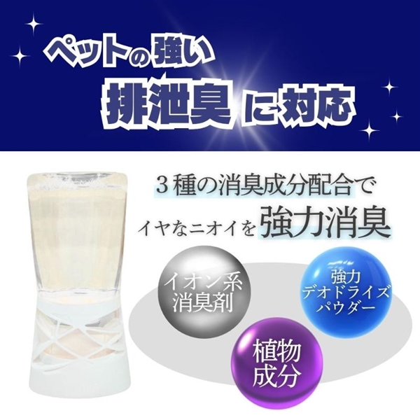 3種の消臭成分配合で、ペットのイヤなニオイをしっかり消臭します。