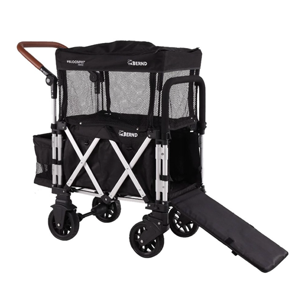 押す・引くの両方のハンドルを備え、首輪固定ストラップ2本やジッパー付きネットバスケット付きで安全に使用できます。