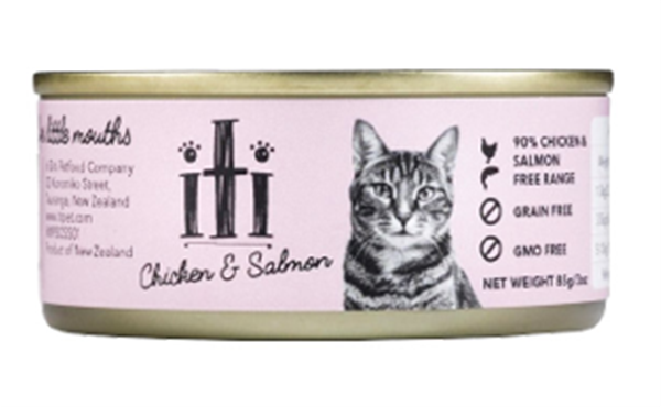 チキン、サーモン、パンプキン、ビール酵母、フィッシュオイル、ラム血漿、寒天、グアーガム、緑イ貝、アミノ酸類(タウリン)、ビタミン類(塩化コリン、B3、E、B1、B5、B2、B6、A、ビオチン、B12、葉酸、D3)、ミネラル類(塩化カリウム、リン酸二カルシウム、ピロリン酸ナトリウム、炭酸カルシウム、鉄、亜鉛、セレン酸ナトリウム、マンガン、銅、ヨウ素酸カルシウム)
