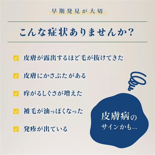 炎症性皮膚疾患のコントロール、皮膚・被毛の健康維持のためにオメガ3を配合しています。