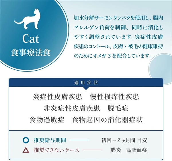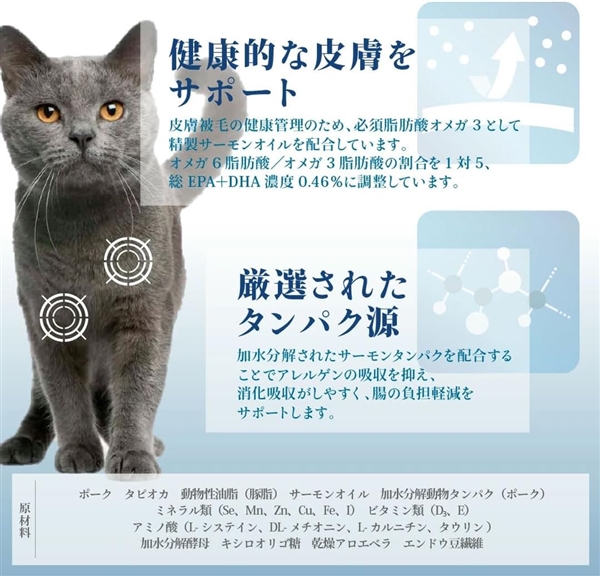 加水分解サーモンタンパクを使用し、腸内アレルゲン負荷を制御、同時に消化しやすく調整されています。