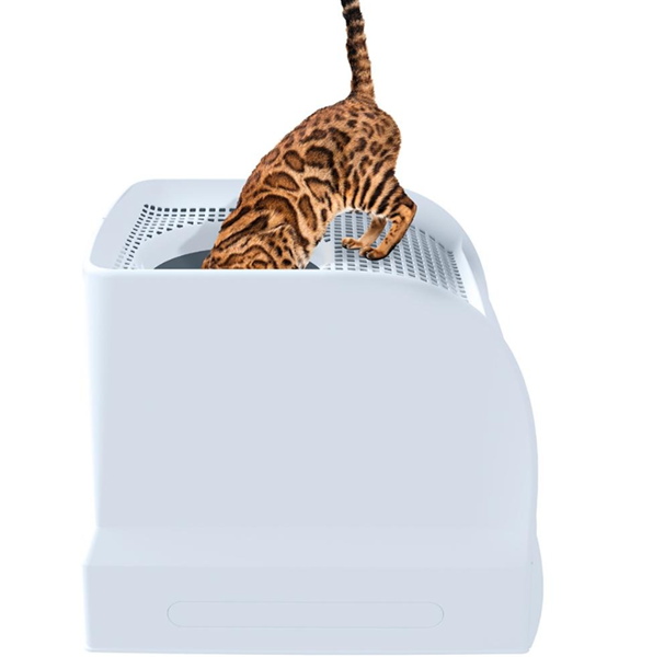 上部の排出口により、猫が蓋の上を歩いて足についた砂を落としてもボックスの周囲が汚れるのを防ぎます。