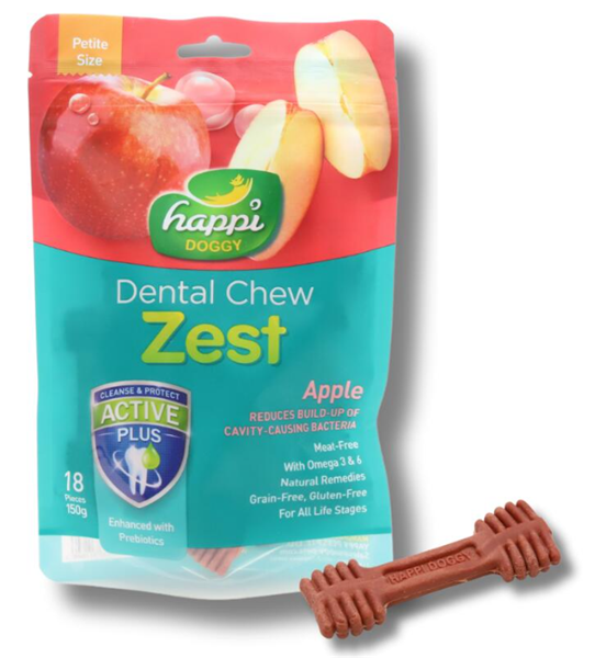 ビタミン A、E、M、H など健康を増進するビタミンを多く含んだアップルフレーバーは、愛犬の歯ぐきを刺激して唾液の分泌を促し、虫歯の原因となる細菌の蓄積を防ぎます。
