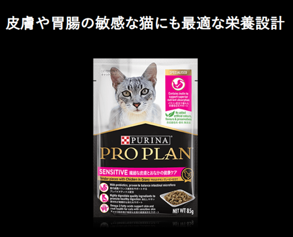 皮膚や胃腸の敏感な猫にも最適な栄養設計。